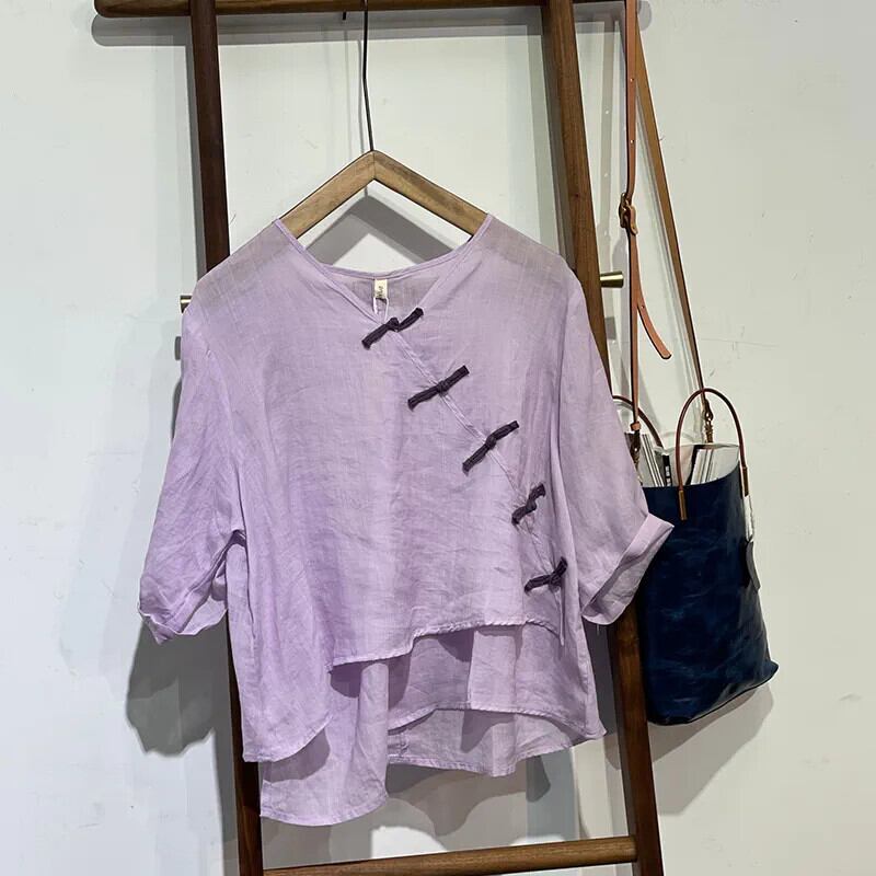 Eign Trade Counter ブランドテールグッズ中国風のボタン付きコットンとリネントップス夏のリネンハイウエスト A ラインスカート 2 点セット女性 サマー 夏物 Aライン sine3250226501