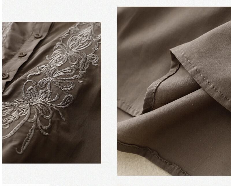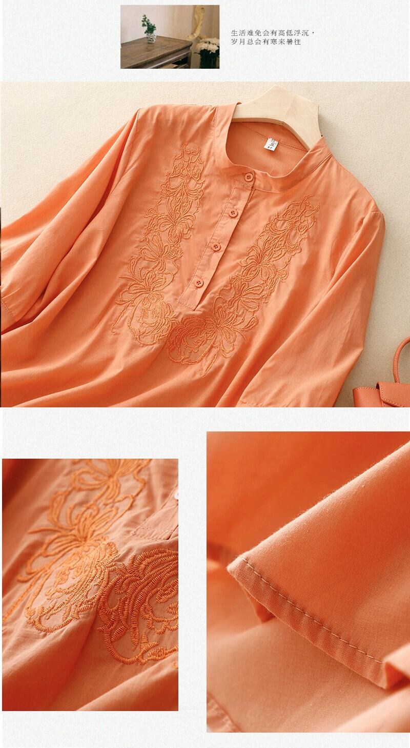 クリアランスリーク〜カウンター最後の在庫レディースレトロコットンとリネン刺繍シャツトップルーズカジュアルラミーミッドスリーブシャツ レッド sine66373114975