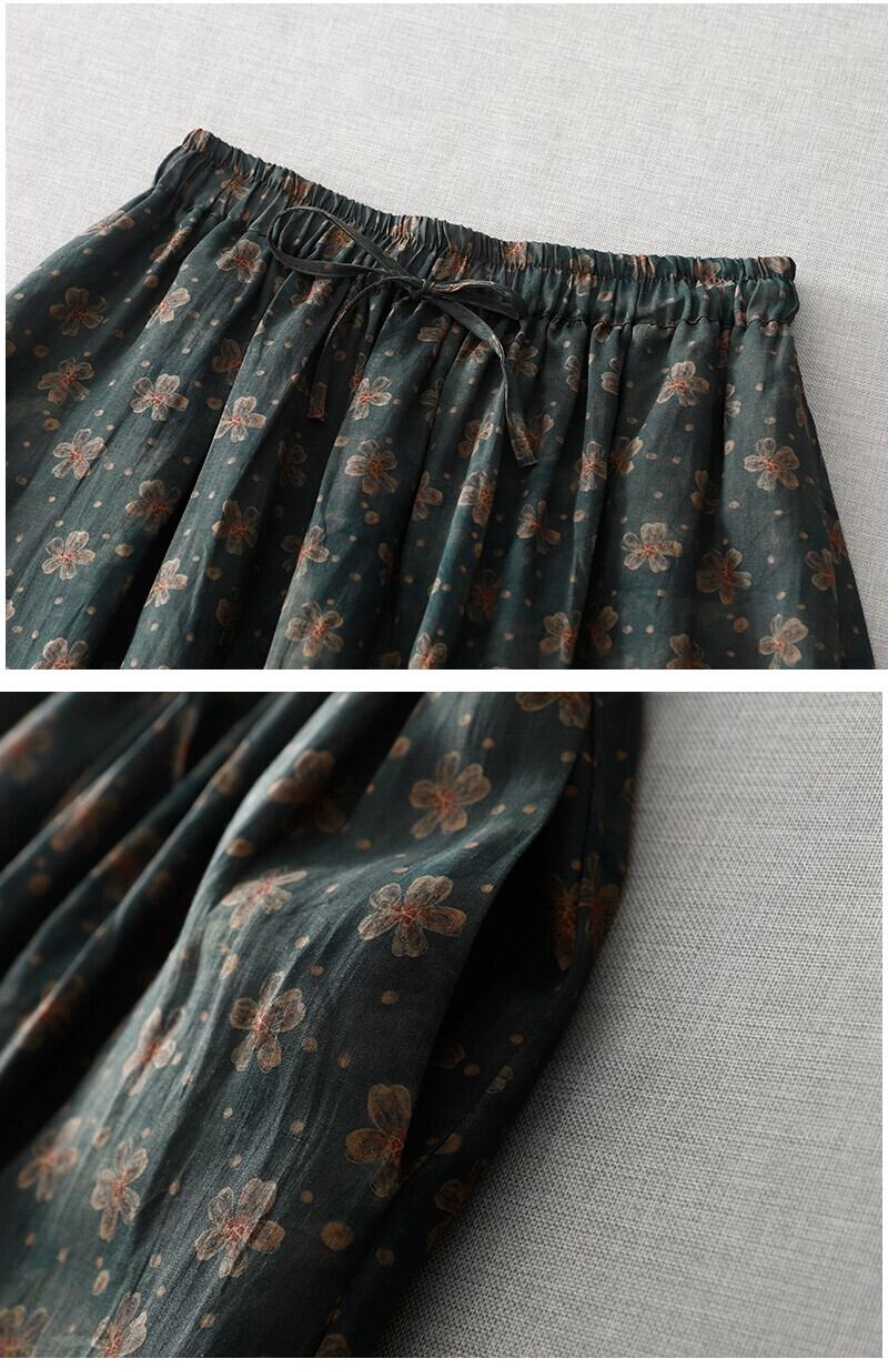 eign trade ese オリジナルオーダー大物撤退レディース綿麻プリントスカート夏の弾性ウエストラミー A ラインスカート コットン エラスティック 伸縮 サマー 夏物 Aライン sine43629674460