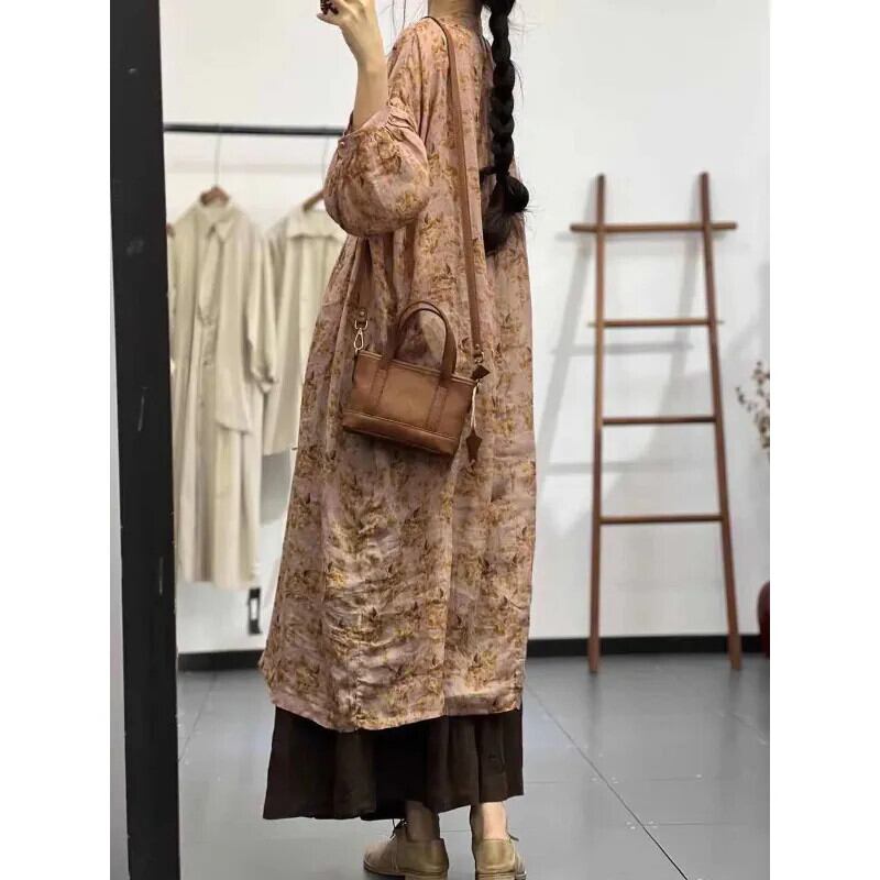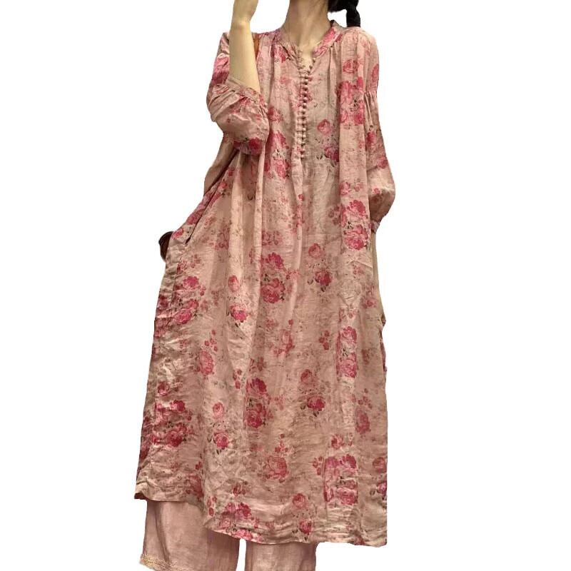 ディスカウント ストアの有名なカウンター クリアランス クリアランス エスニック スタイル プリント コットンとリネン ローブ レディース ルーズ スリミング リネン ドレス sine14781954871
