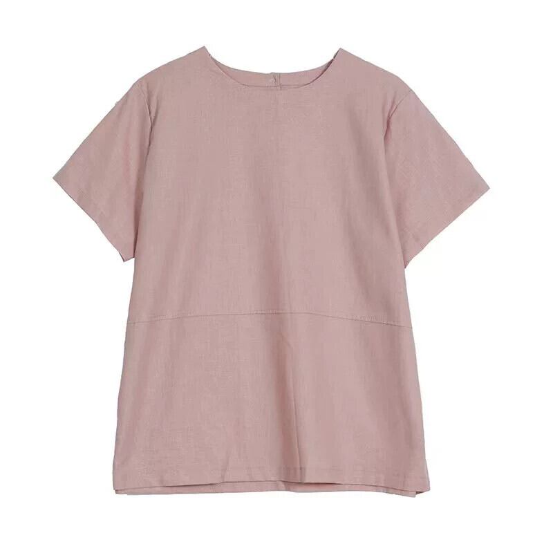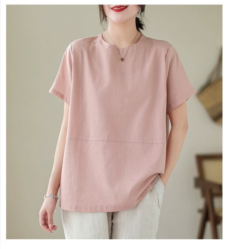 Eign Trade Export Big Tail Goods Women's シンプルで多用途なリネンプルオーバートップ、ルーズコットンとリネンのラウンドネック半袖Tシャツ Oネック sine94929276798