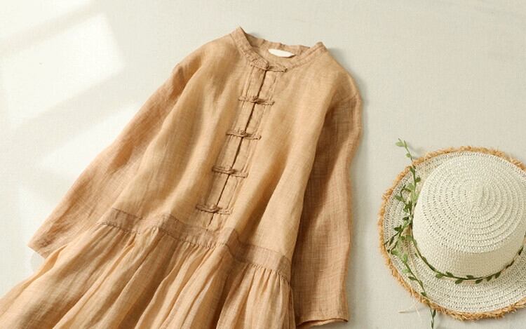 クリアランスカウンター最後の在庫レトロコットンとリネンドレスレディースルーズスリミングリネン七分袖シャツドレス sine76048459136
