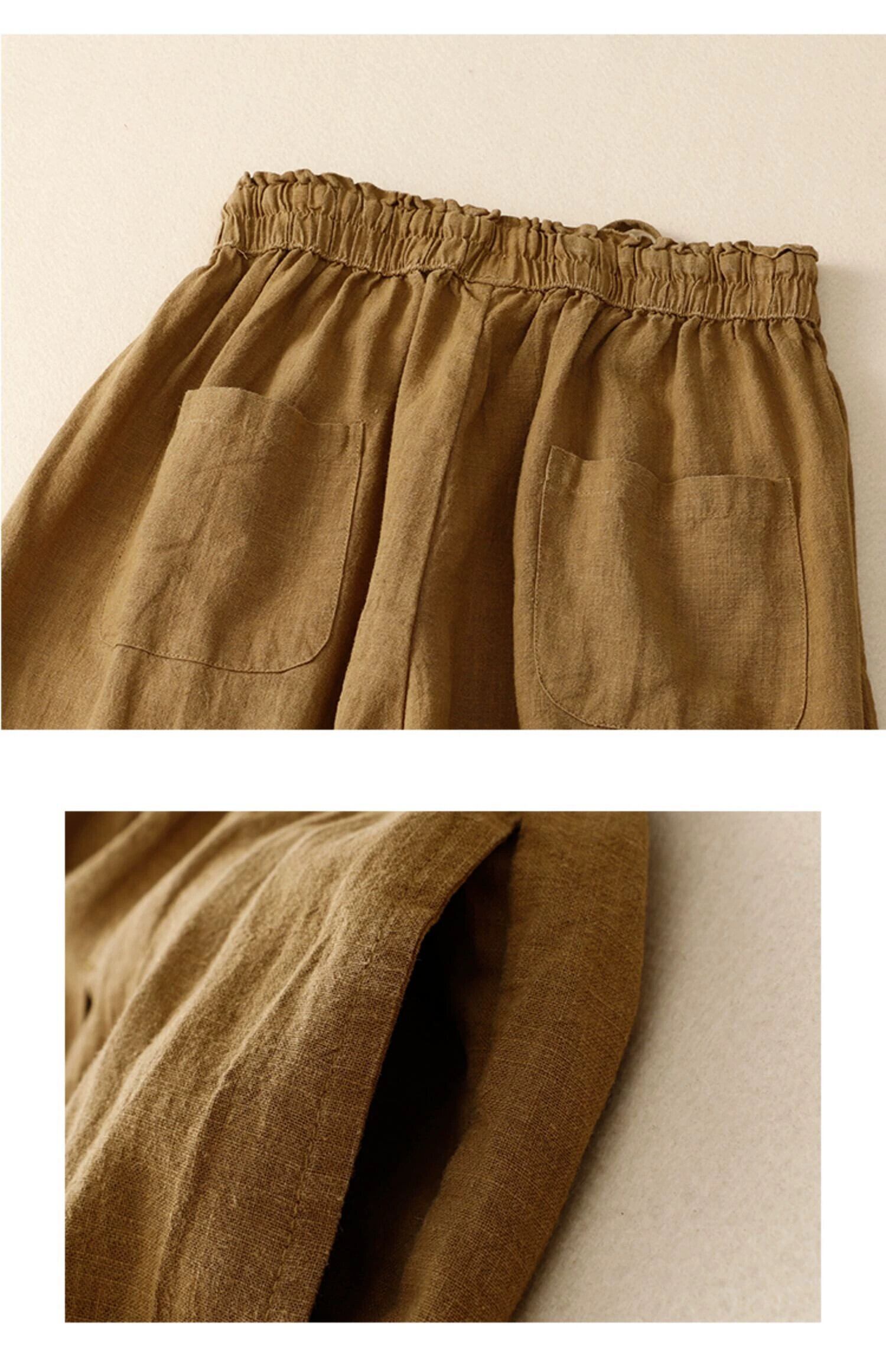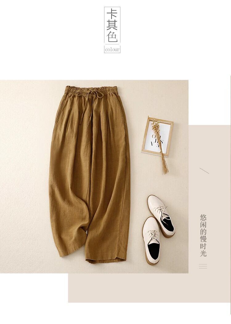 クリアランスカウンター、大手ブランドのテールグッズ、レトロなコットンとリネンのワイドレッグパンツ、レディース、ハイウエストドローストリング、リネンストレートカジュアルパンツ sine72739412453