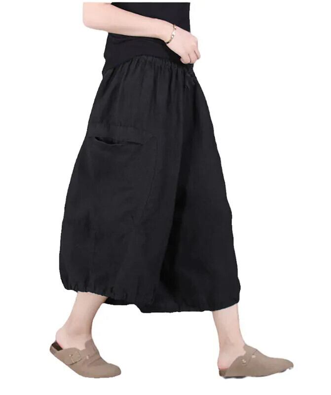 eign trade ese オリジナルオーダービッグブランド削除リネンワイドレッグブルマーレディースルーズハイウエストコットンとリネンカジュアル七分丈パンツスカート ショーツ sine9828611919