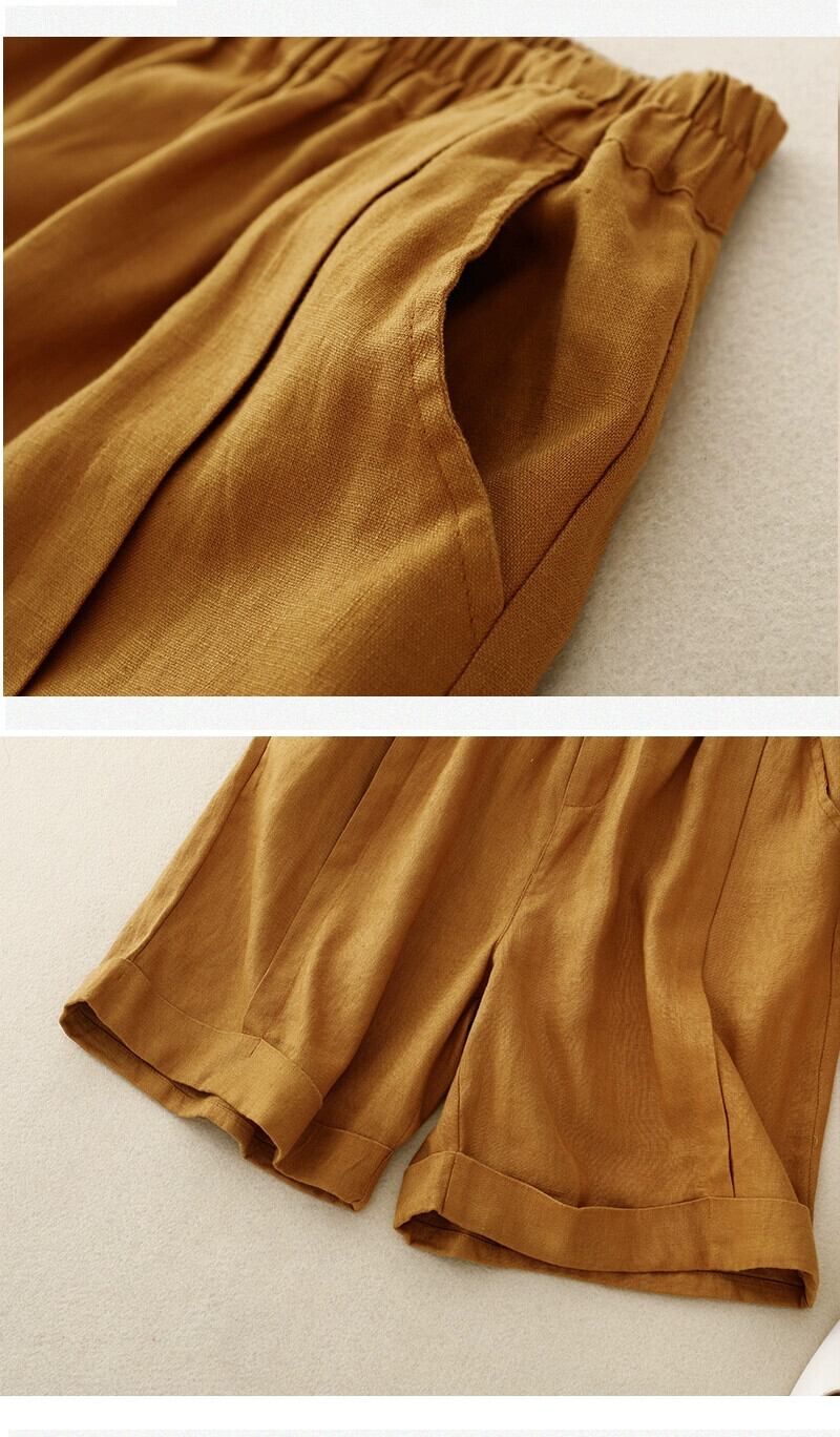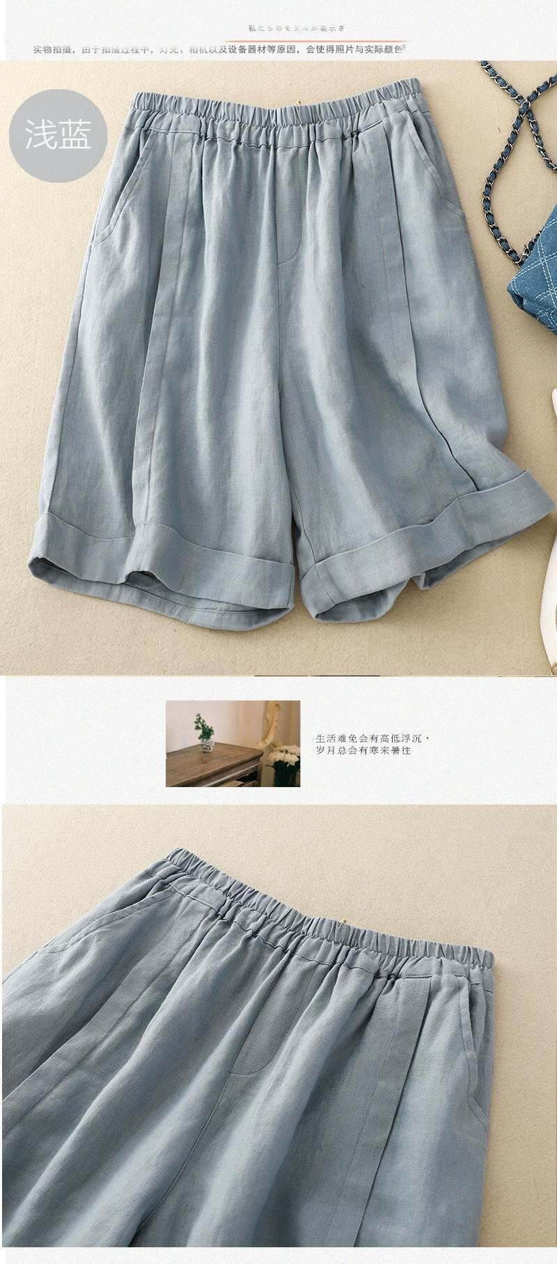 第一線ブランドの eign trade 撤退、ゆったりとしたコットンとリネンのワイドレッグ ショーツ、女性用の伸縮性のあるウエスト、カジュアルなリネンの 7 分パンツ、薄手 エラスティック ブルマー sine10098197318