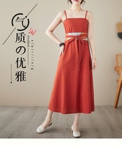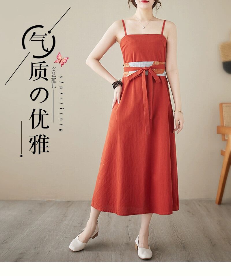 ビッグブランドの在庫切れ綿とリネンのサスペンダードレスの女性のチャイナスタイルのウエストレースアップリネンロングスカートのクリアランスカウンターの削除 コットン sine16594395134