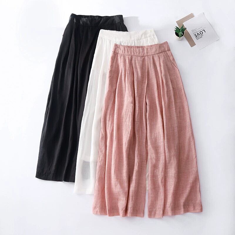 クリアランスクリアランスカウンター牛グッズ除去二重層ラミーワイドレッグパンツ女性ルーズ弾性ウエストリネン 9 点カジュアルパンツ エラスティック 伸縮 sine99759705295