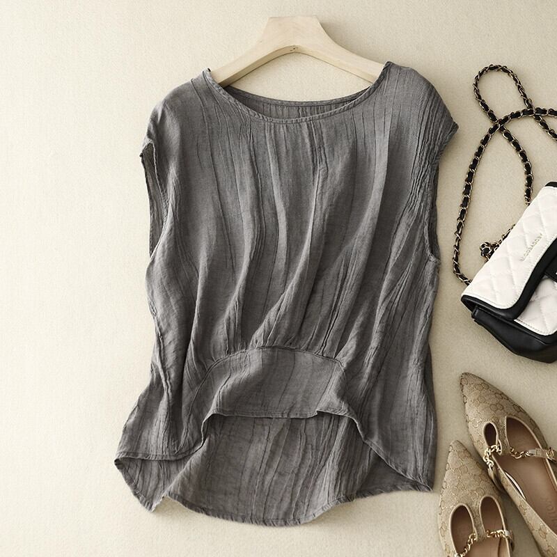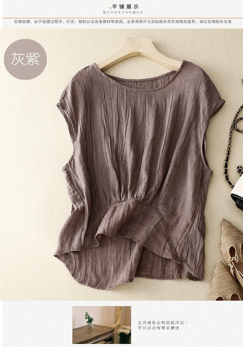 ビッグブランドテールグッズのクリアランスカウンター取り外しレトロコットンとリネンの袖付きTシャツレディースルーズカジュアルプリーツリネントップ薄い sine43869082323