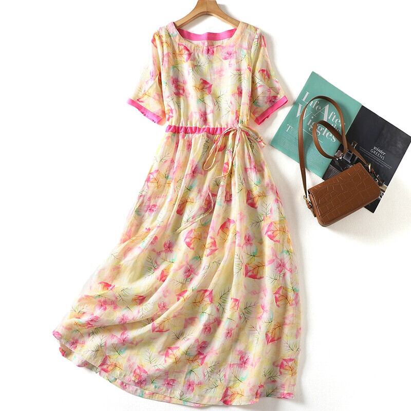 クリアランスカウンター、大手ブランドテールグッズ、エストスタイルラミープリントワンピース、レディースウエスト絞りレースアップ綿麻ロングスカート コットン sine59476341276