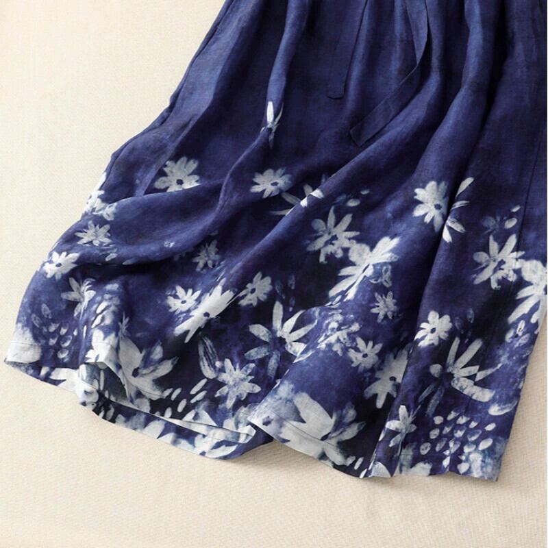 ビッグブランドテールグッズのクリアランスカウンター撤去レディースアーティスティックプリントコットンリネンドレスウエストレースアップリネンロングスカート sine49611642667