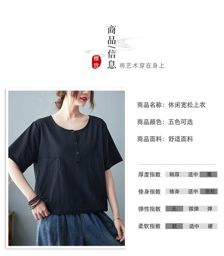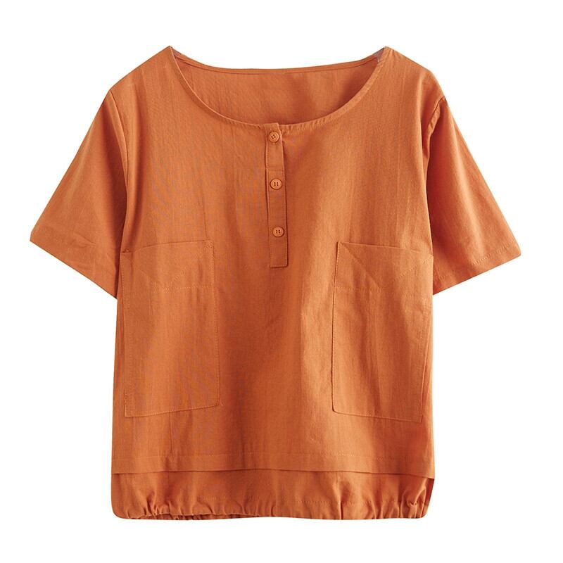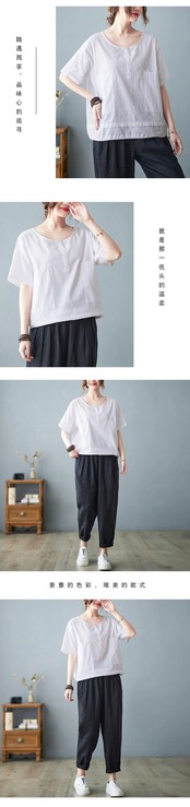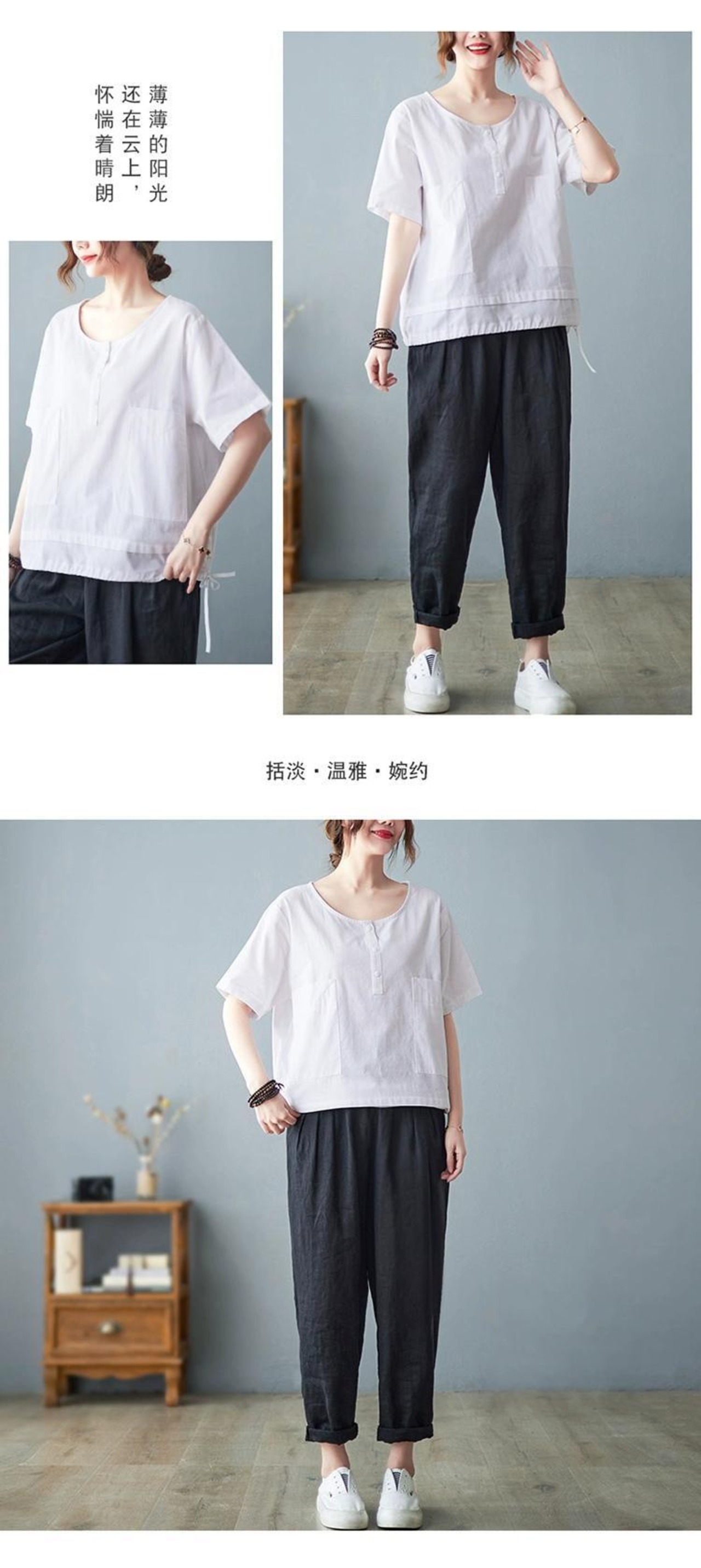 モールビッグネーム撤退最後の在庫レトロコットンとリネン半袖Tシャツレディース夏ルーズで軽いリネン半袖トップ サマー 夏物 sine39622721956