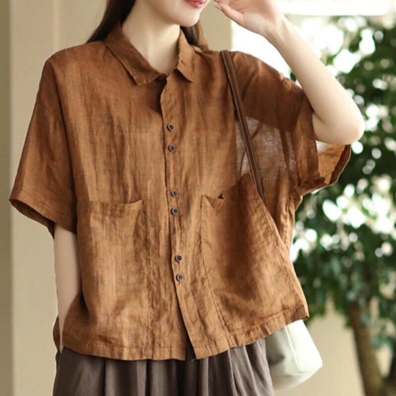 永貿易輸出ビッグブランドテールグッズ撤退レトロ綿とリネン半袖シャツ女性のゆったりとした軽いリネンシングルブレストトップ コットン sine99853211414