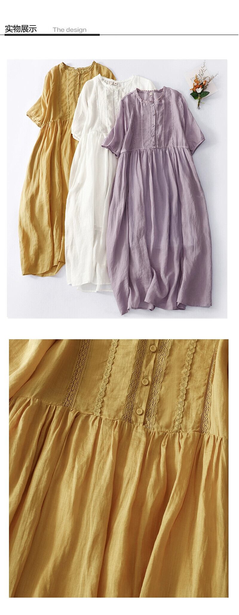 クリアランスカウンター最後の在庫レディースレトロコットンとリネン半袖ドレスルーズ二重層ラミーロングスカート sine62822934972