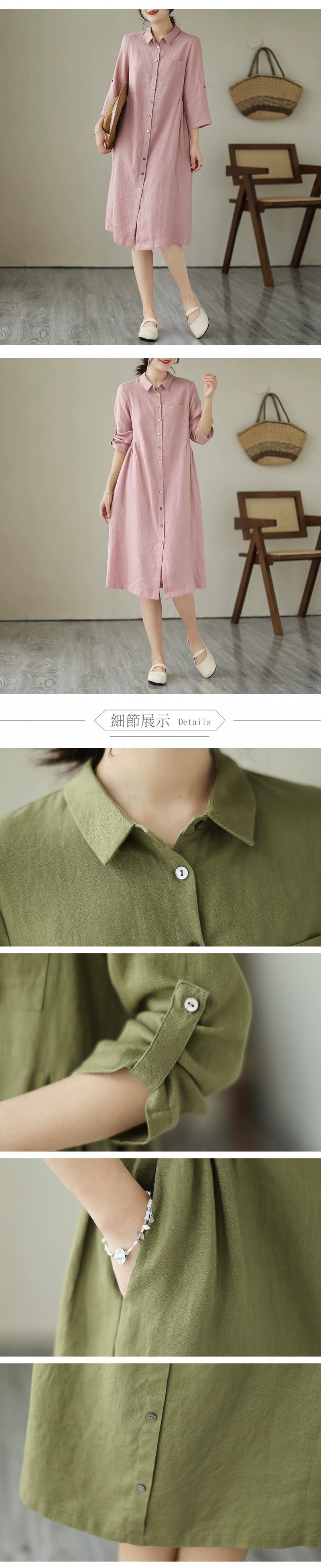 ビッグブランドテールグッズのクリアランスカウンター撤去ゆったり綿麻カーディガンワンピースレディース軽くて薄いPOLO襟リネンミモレ丈スカート コットン sine27362978160