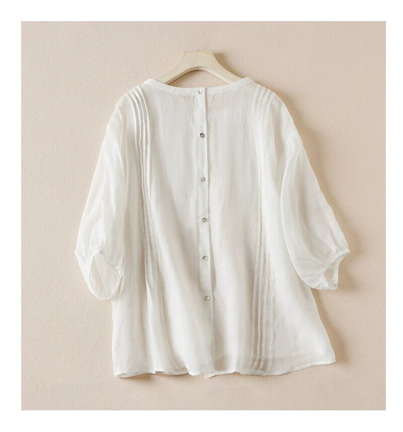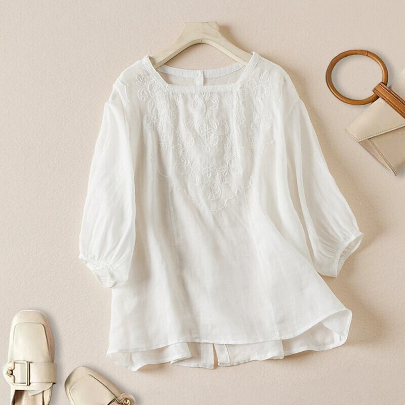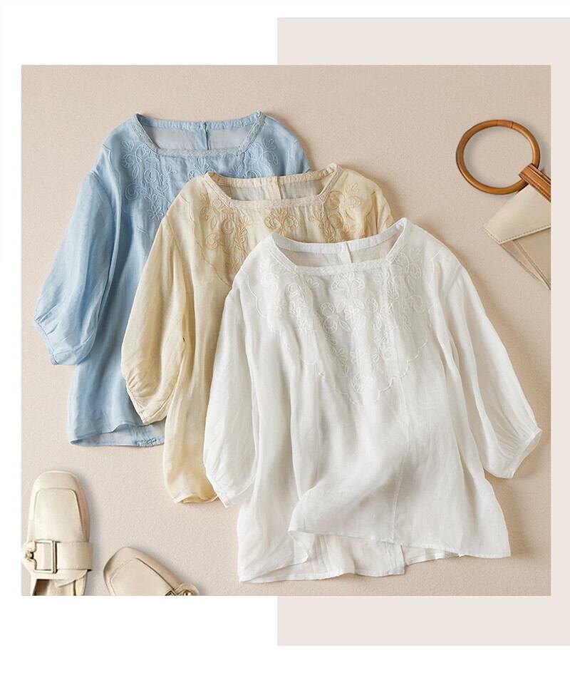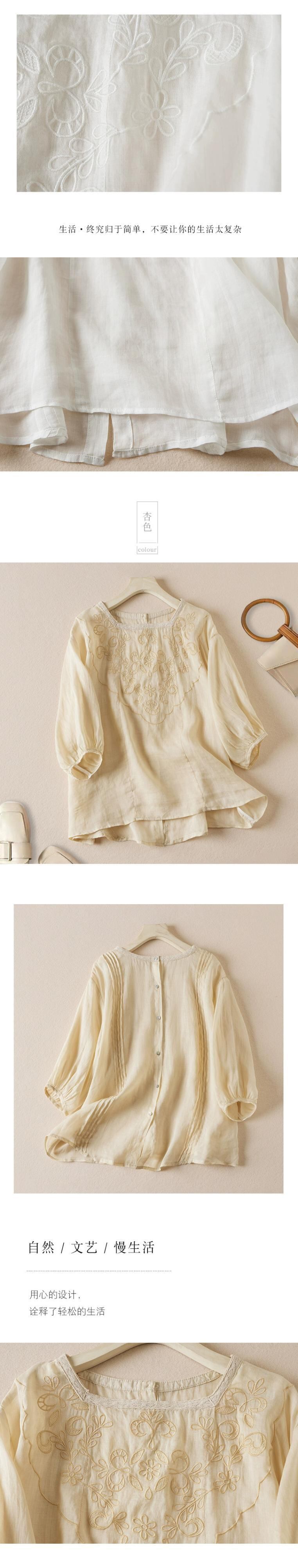 カウンタークリアランスグッズレトロ刺繍ラミーシャツトップレディースルーズリネン半袖シャツ薄手 レッド sine10488379319