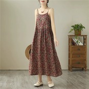 eign trade ese 有名なカウンター商品女性の芸術的な花柄サスペンダードレスルーズスリミングコットンとリネンのベストスカート sine53178138947
