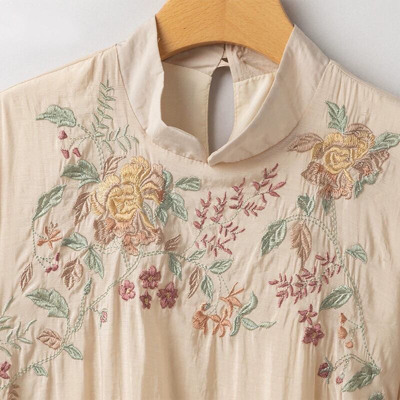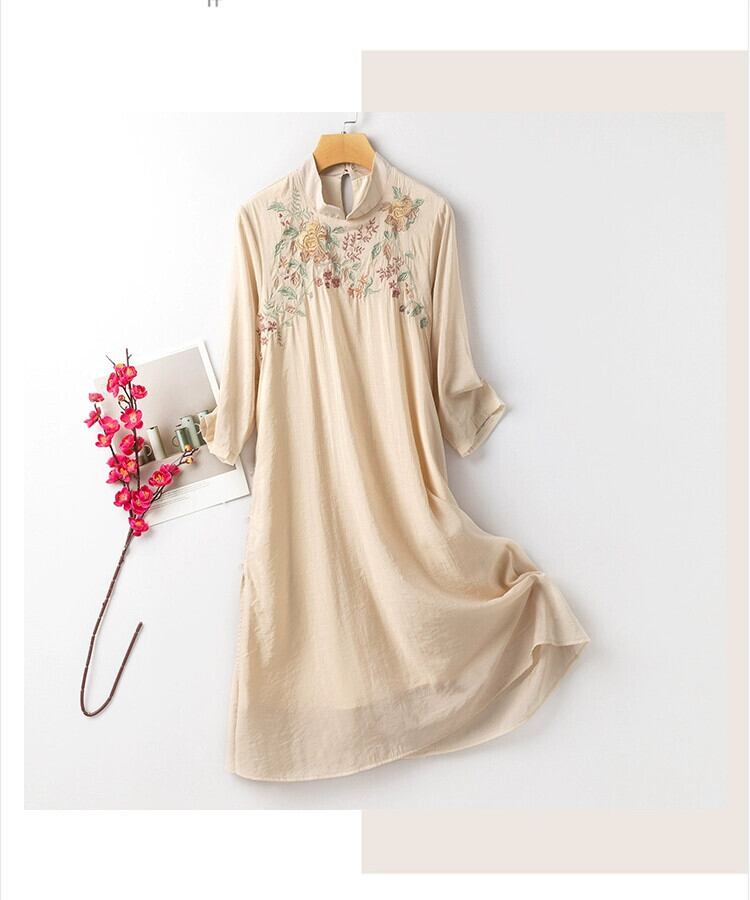 eign trade ese オリジナル注文ビッグブランド撤退中国風刺繍ラミーチャイナドレスルーズで軽い綿とリネンのドレス レッド コットン sine1798359921