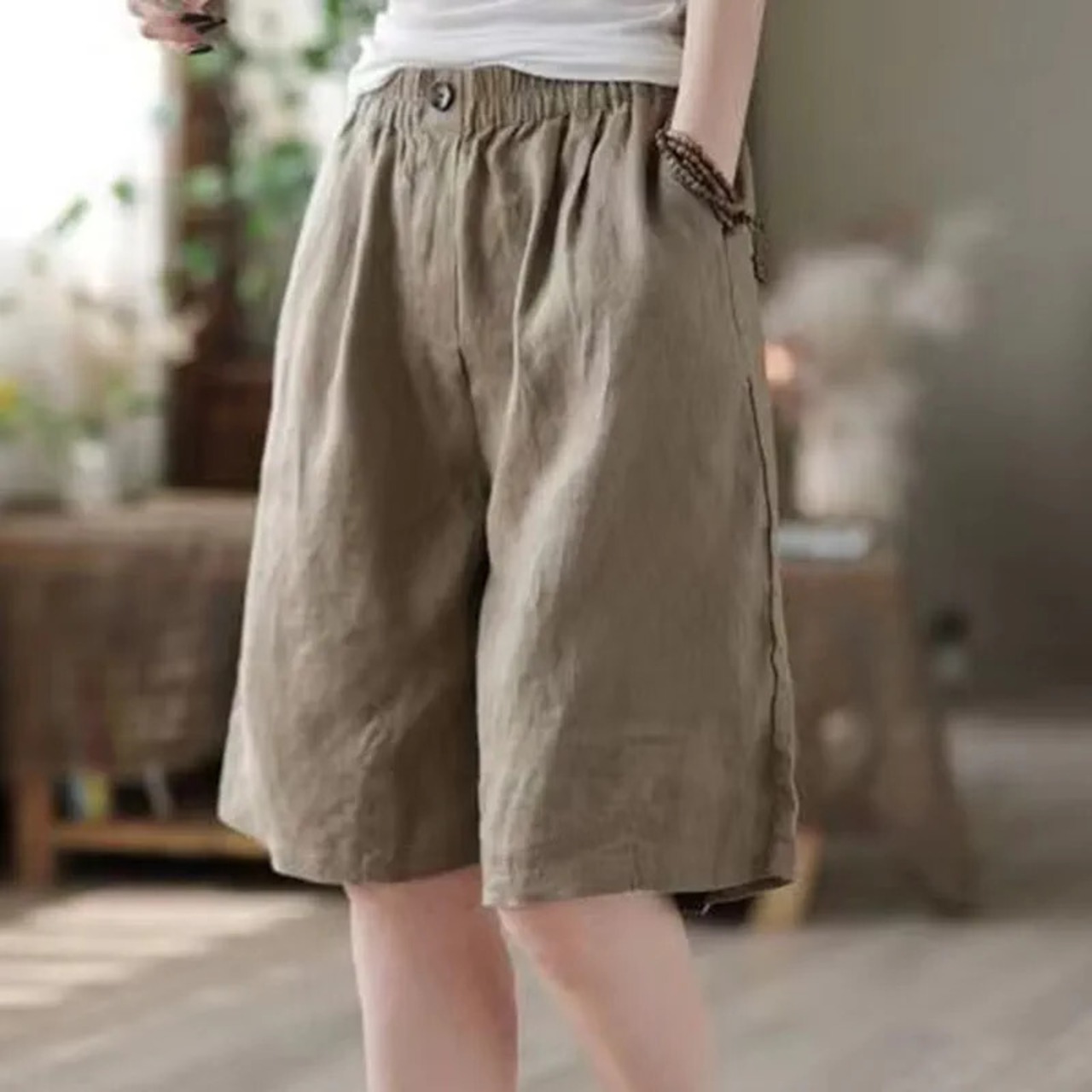 Eign Trade Export ブランドテールグッズレトロコットンとリネンカジュアルストレートレッグショーツ女性、ルーズハイウエストリネンワイドレッグショーツ ブルマー sine12713352532