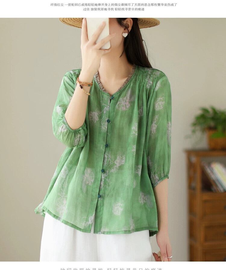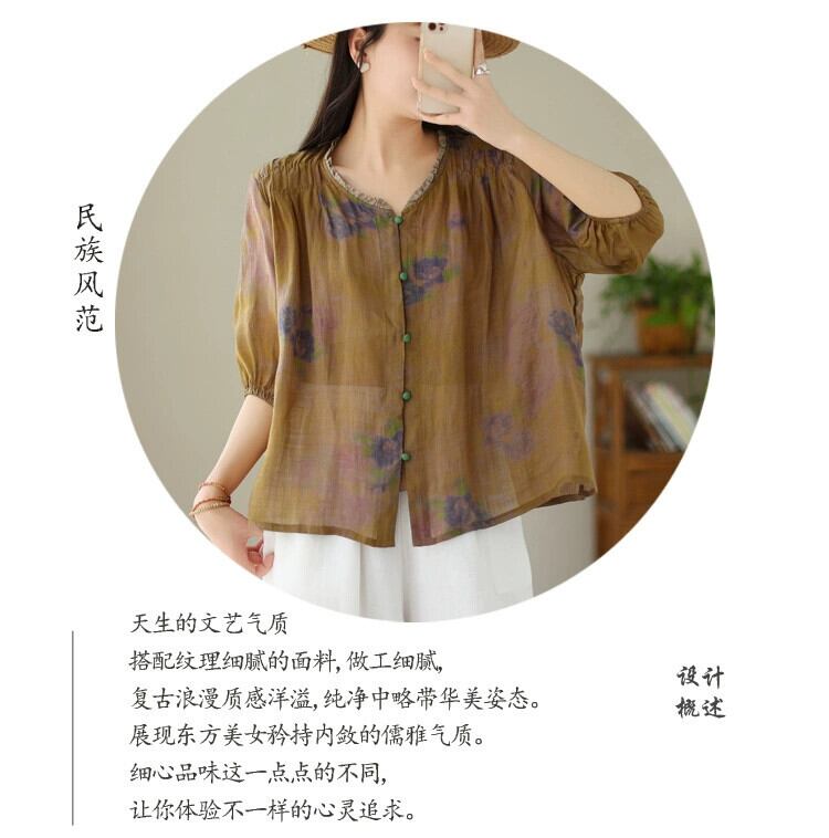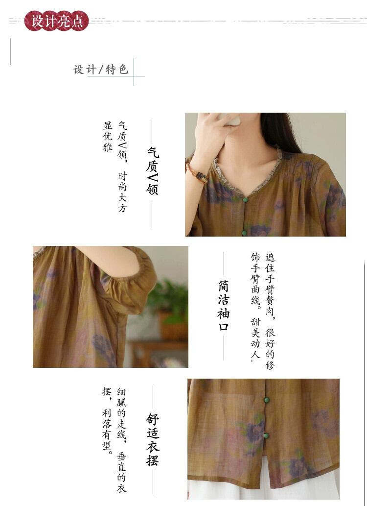 ese とオリジナル eign trade 有名商品文学ラミープリントシャツ女性のゆったりとした軽いリネン日焼け止めシャツトップ sine93356568830