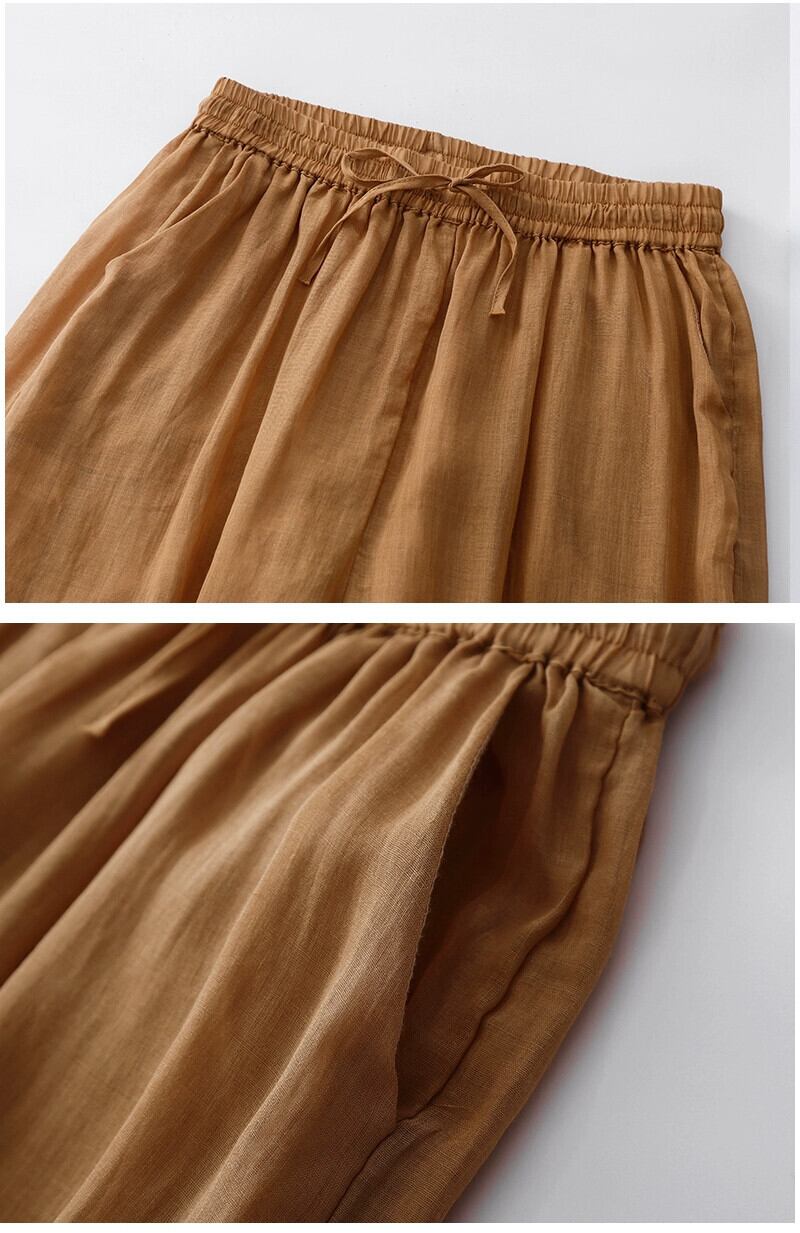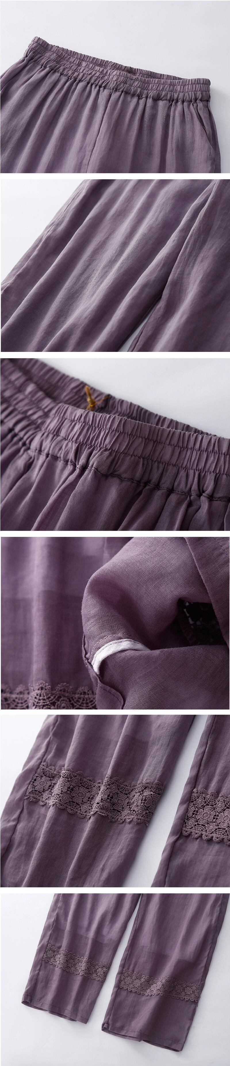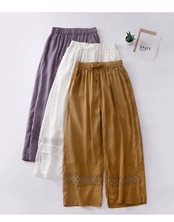 有名ブランドの在庫外コットンとリネンのドレープワイドレッグパンツ(ウエストゴム、レーススプライシング、リネン9点パンツ)レディースのクリアランスカウンターの削除 エラスティック 伸縮 sine51926764190