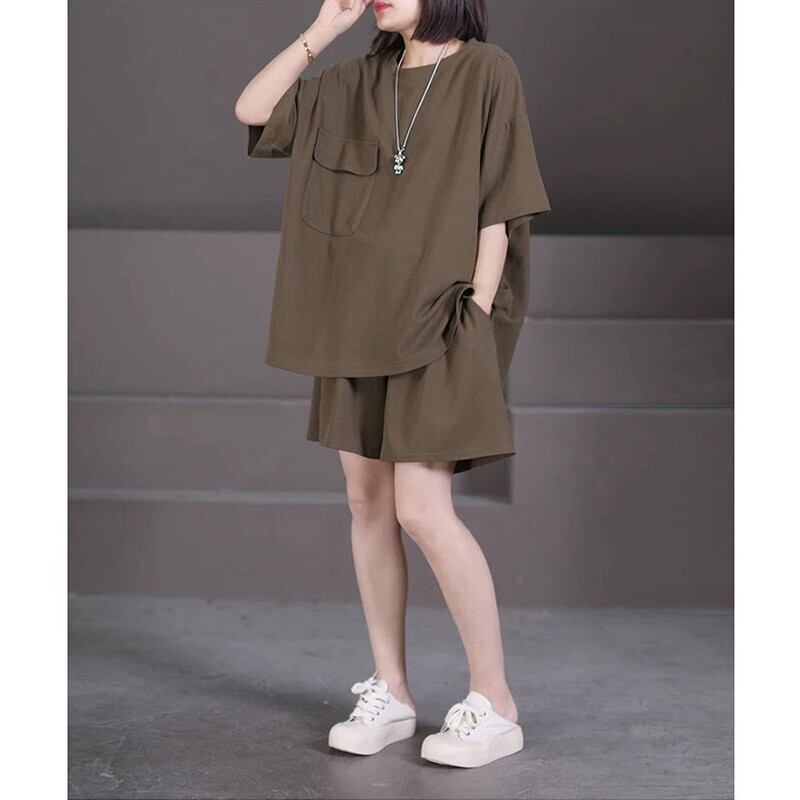 eseとオリジナルのシングルエイト貿易の有名なテールグッズ綿とリネンのスーツの女性のゆったりとしたカジュアルな半袖トップス、ワイドレッグショーツの2点セット コットン ブルマー sine74383421706