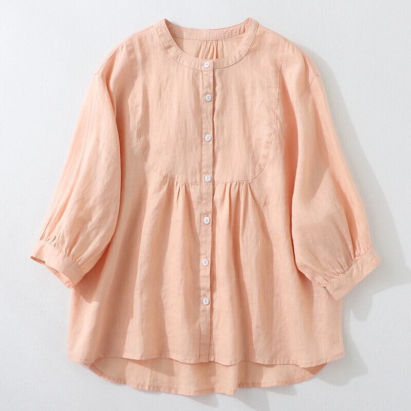 クリアランスブランド牛用品カウンター最終在庫レディースレトロラミー半袖シャツゆったりとした軽いリネンドールトップ sine22915355525