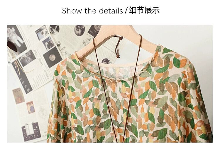 クリアランス漏れ〜カウンター最後の在庫薄いリネン花柄 Tシャツレディースルーズ痩身ラウンドネックコットンとリネンプルオーバートップ夏 サマー 夏物 Oネック sine59885781834
