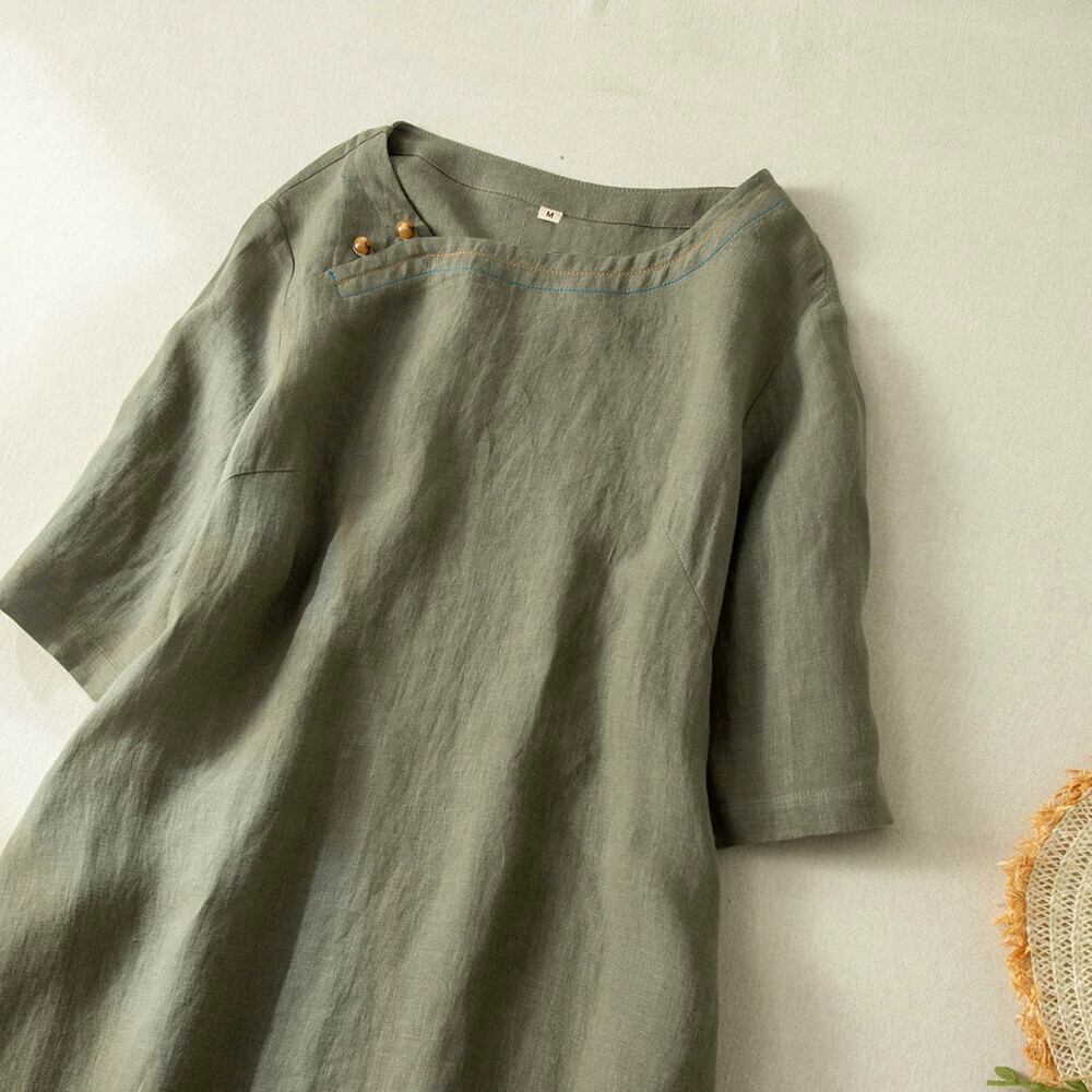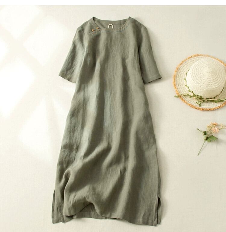 ディスカウント ストア ショッピング モール レトロ改良された斜めの綿とリネンのチャイナ ドレス女性のゆったりとしたリネンの膝上のドレス コットン sine66925737591