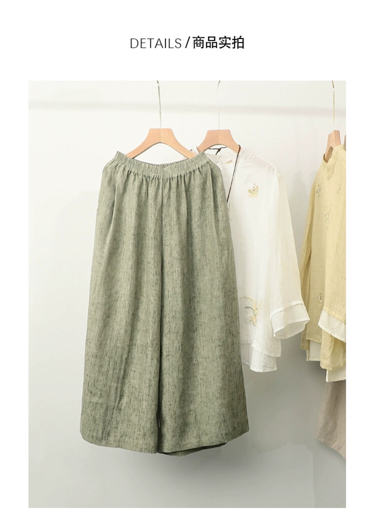 クリアランスリーク〜コットンとリネンのワイドレッグキュロットレディース、レトロなルーズハイウエストの薄いカジュアルリネン9点パンツ sine9775083970