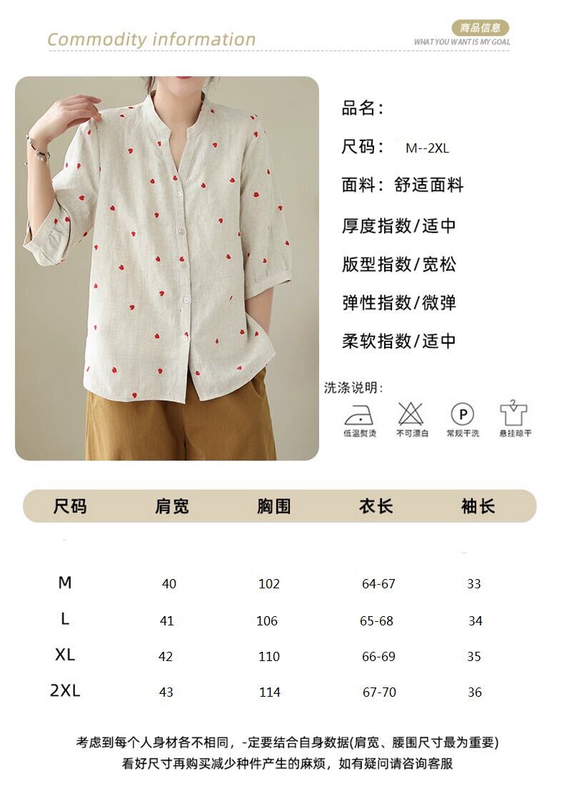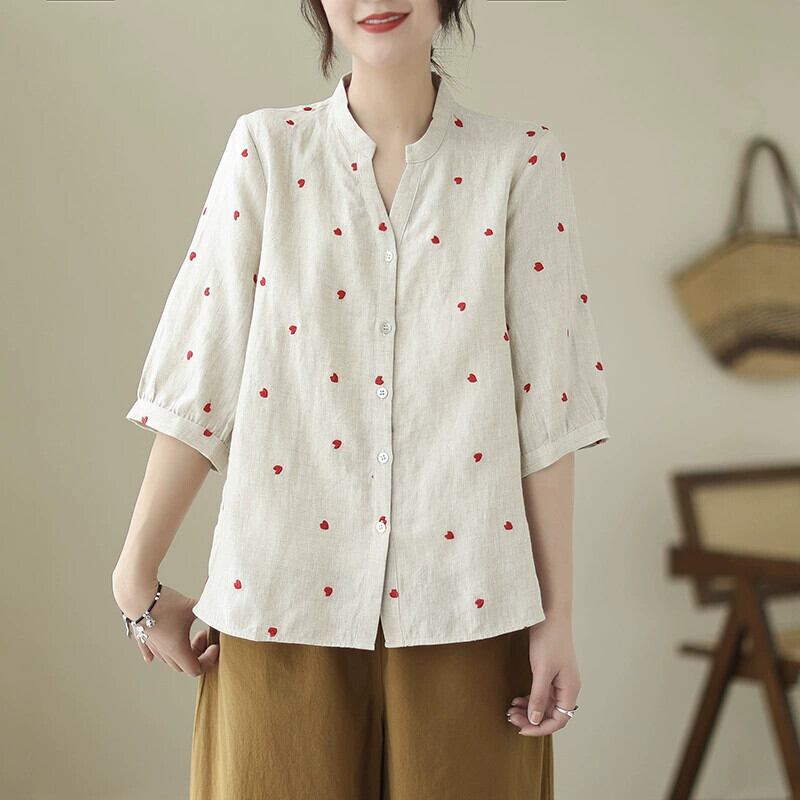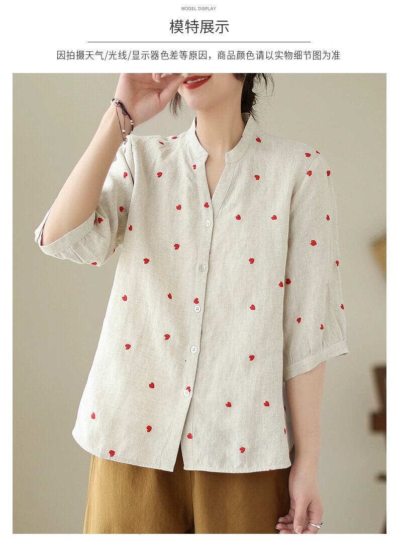 クリアランスカウンター最後の在庫レディースリネン花柄スタンドカラーシャツ夏用ルーズコットンとリネンの七分袖トップ サマー 夏物 sine51000466975