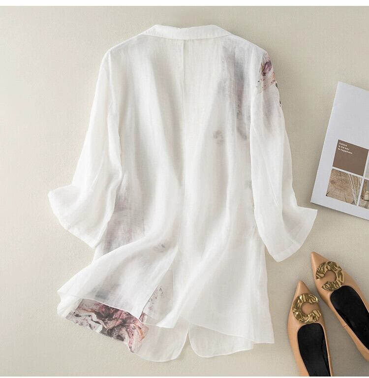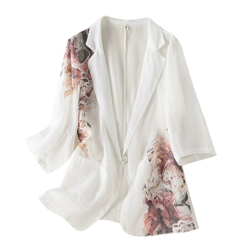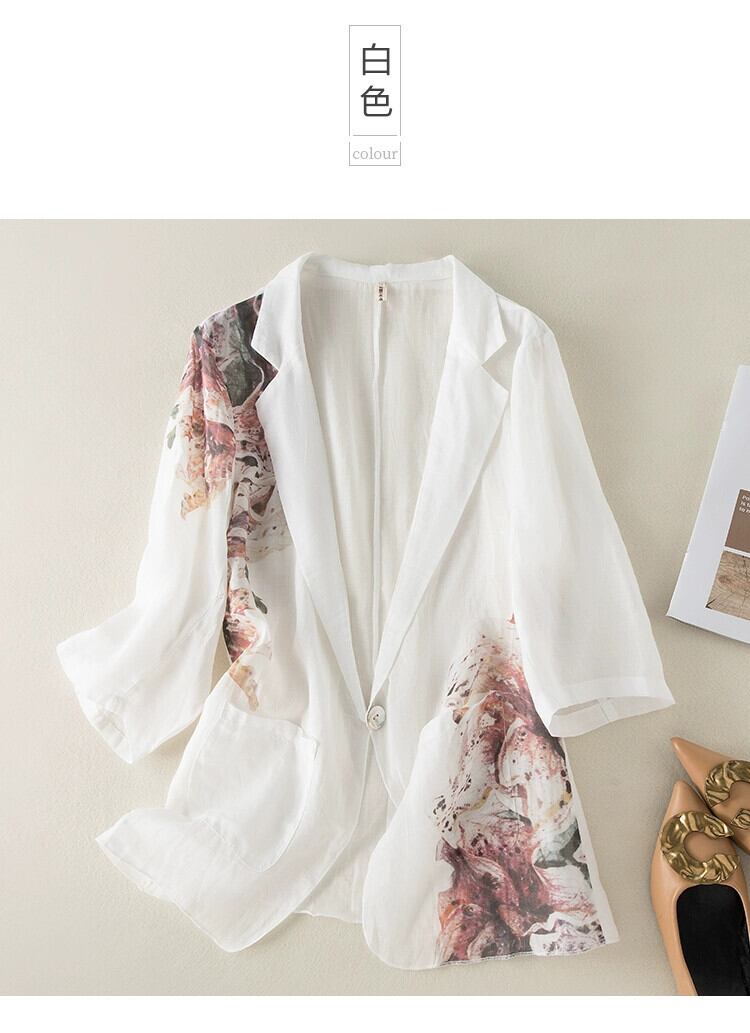 ディスカウントストアショッピングモールの女性の綿とリネンのプリントスーツカラージャケット夏ルーズリネン小さなスーツトップ コットン サマー 夏物 sine21443989953