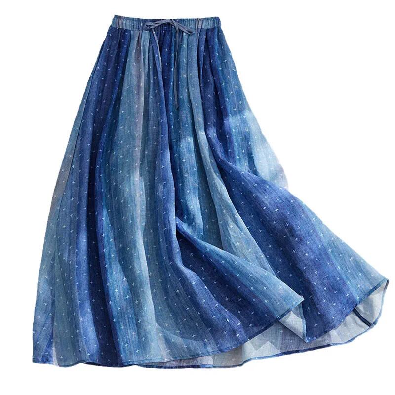 eign trade 激安ブランドテールグッズラミー水玉スカートレディース夏弾性ウエスト二重層リネンワイド裾 A ラインスカート エラスティック 伸縮 サマー 夏物 Aライン sine72180943967