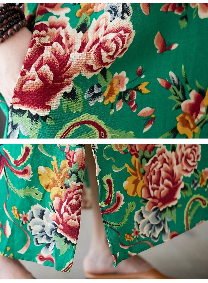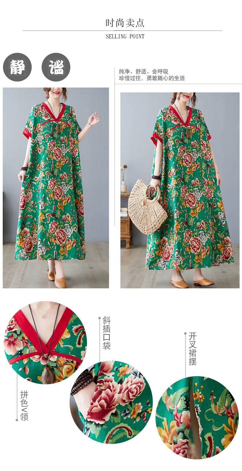 永貿易カウンターブランドテールグッズ綿とリネンドレスエスニックスタイルプリントルーズ腹カバー漢服改良リネンロングスカート コットン sine78714104661