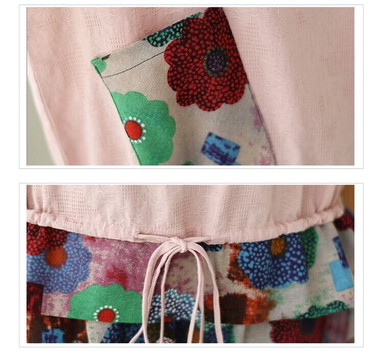 ディスカウントストアショッピングモール綿麻プリントスーツレディース半袖トップスワイドレッグ9分パンツリネン2点セット コットン sine61302279930