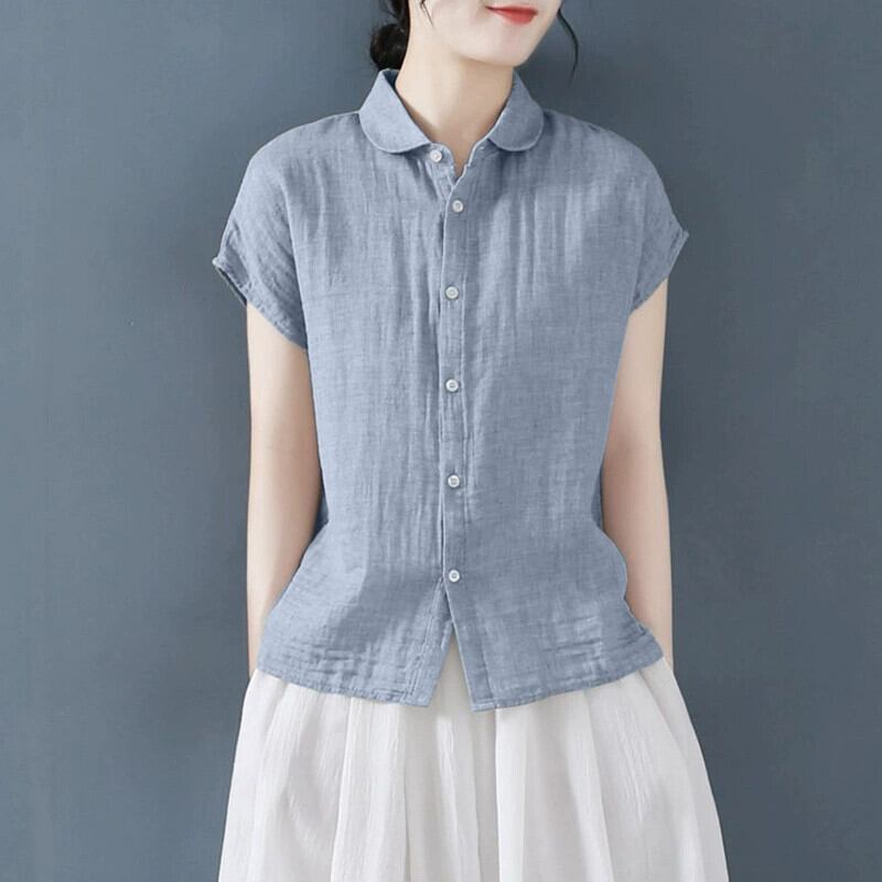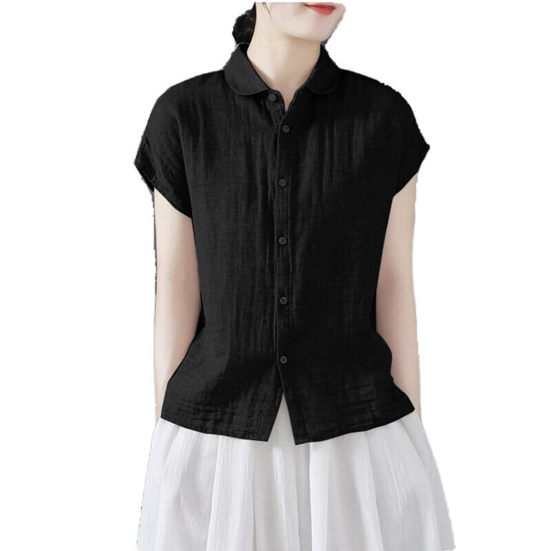 有名ブランドの在庫外のコットンとリネンの女性用シャツ、レトロでゆったりとした万能シャツ、リネンの半袖トップス、薄手のアイテムをクリアランスカウンターで撤去します。 sine16783171956