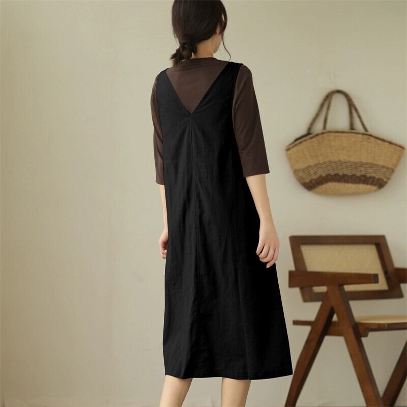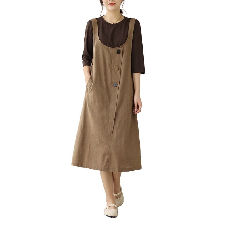eign trade ese big-name カウンター 大きいサイズ 年齢を軽減するコットンとリネンのサスペンダースカート ルーズでスリムなアウターベストドレス 大きめサイズ sine7127134548