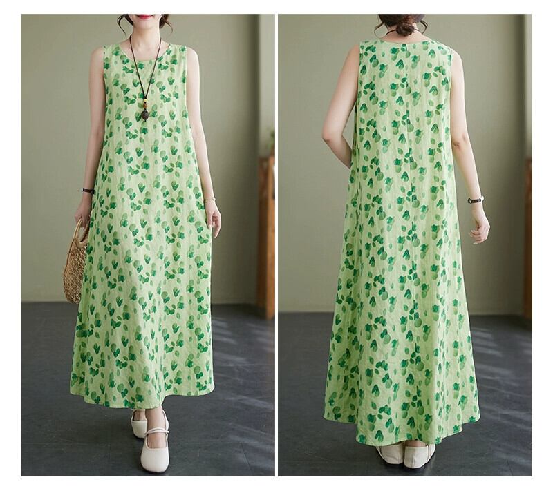 eign trade ese 有名なカウンター商品芸術的なラミー花柄ドレス女性のルーズでスリムな綿とリネンのベストロングスカート コットン sine85735534047