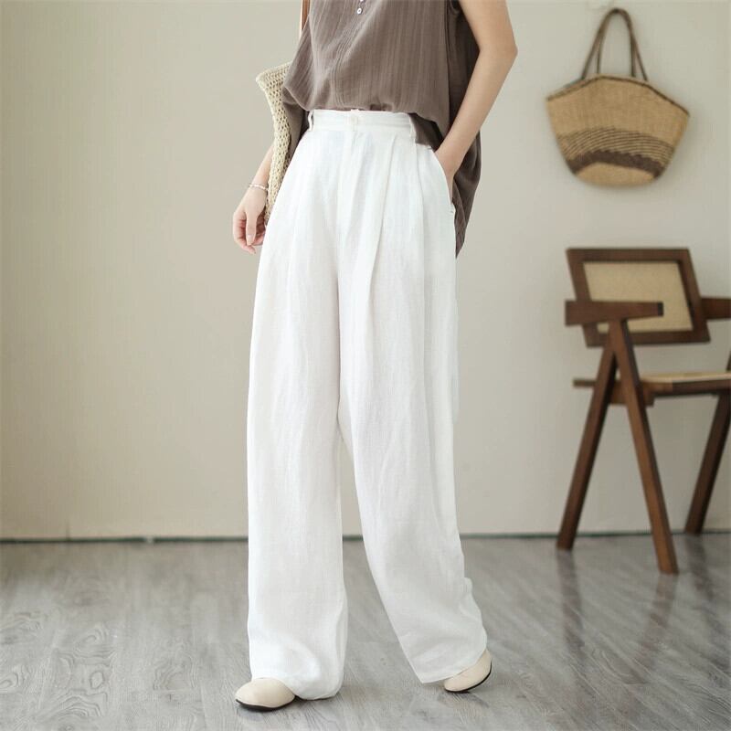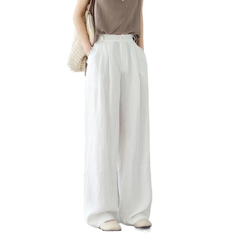 英国貿易輸出の有名テール商品がキャビネットから削除されましたレトロリネンカジュアルワイドレッグパンツ女性ハイウエストストレートドレープコットンとリネンパンツ sine11075786423
