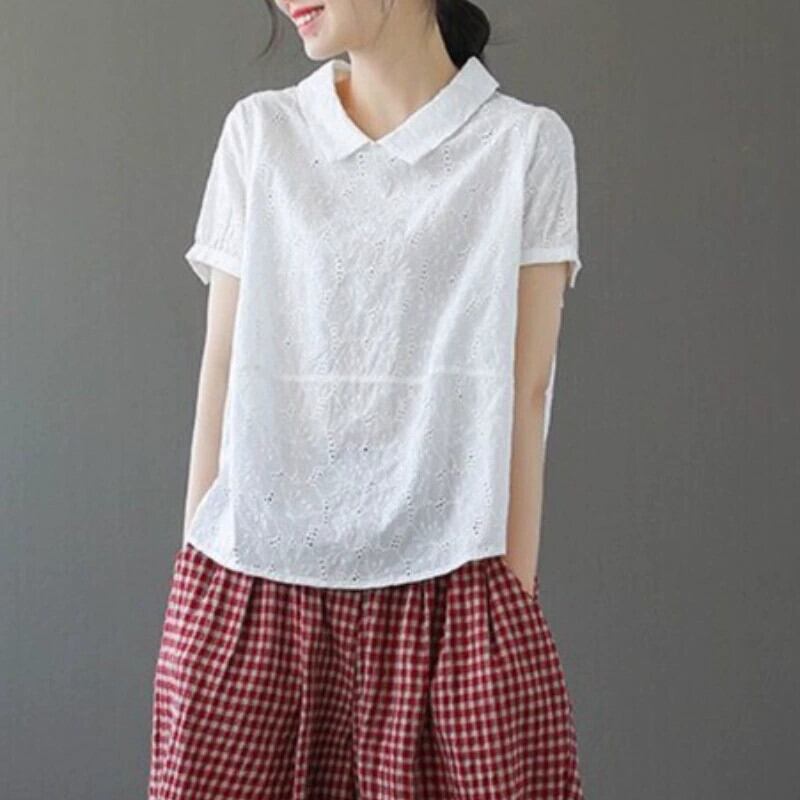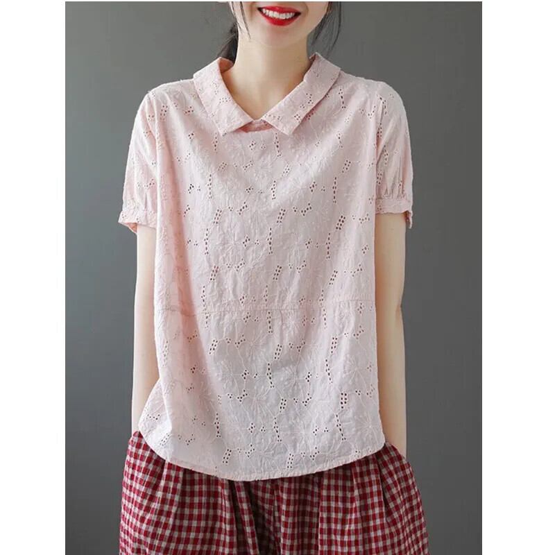 クリアランスカウンター最後の在庫 ese age-reducing ラミードールカラーシャツ レディース ルーズリネン半袖トップ sine10591346540