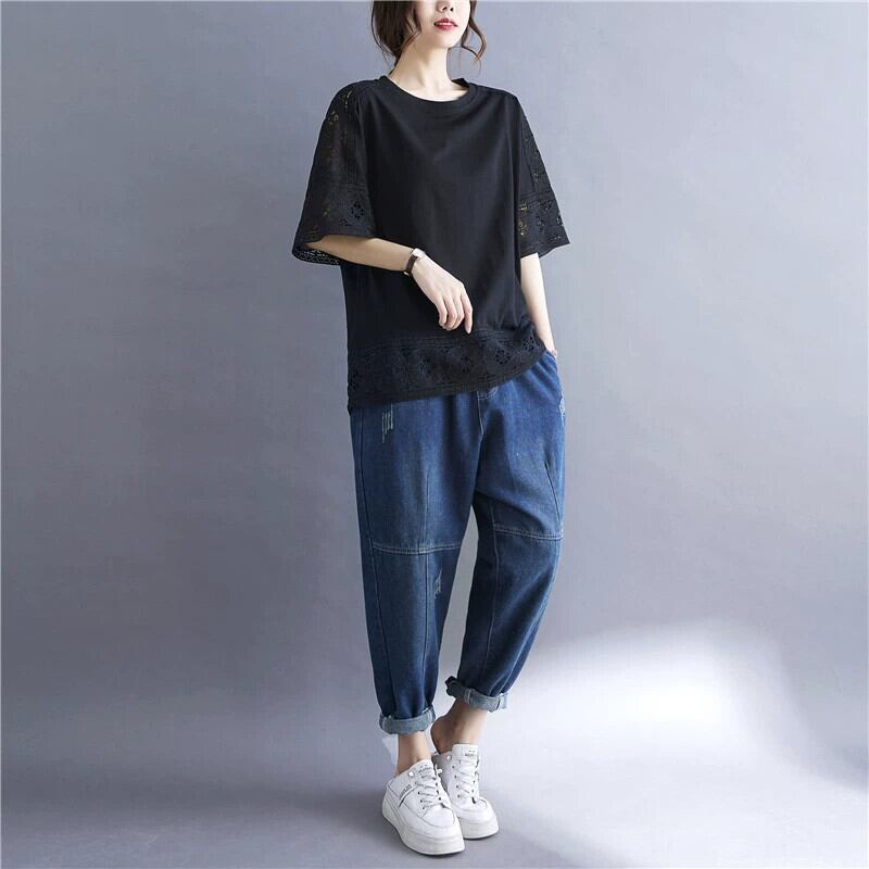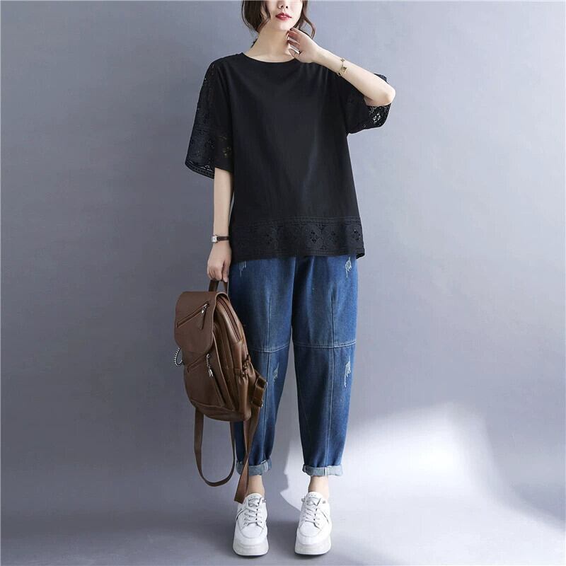 Eign Trade Counter ブランド テール グッズ レース ステッチ 中空半袖 Tシャツ レディース ゆったり 通気性 ラウンドネック 半袖 トップス 薄手 Oネック sine6254516662
