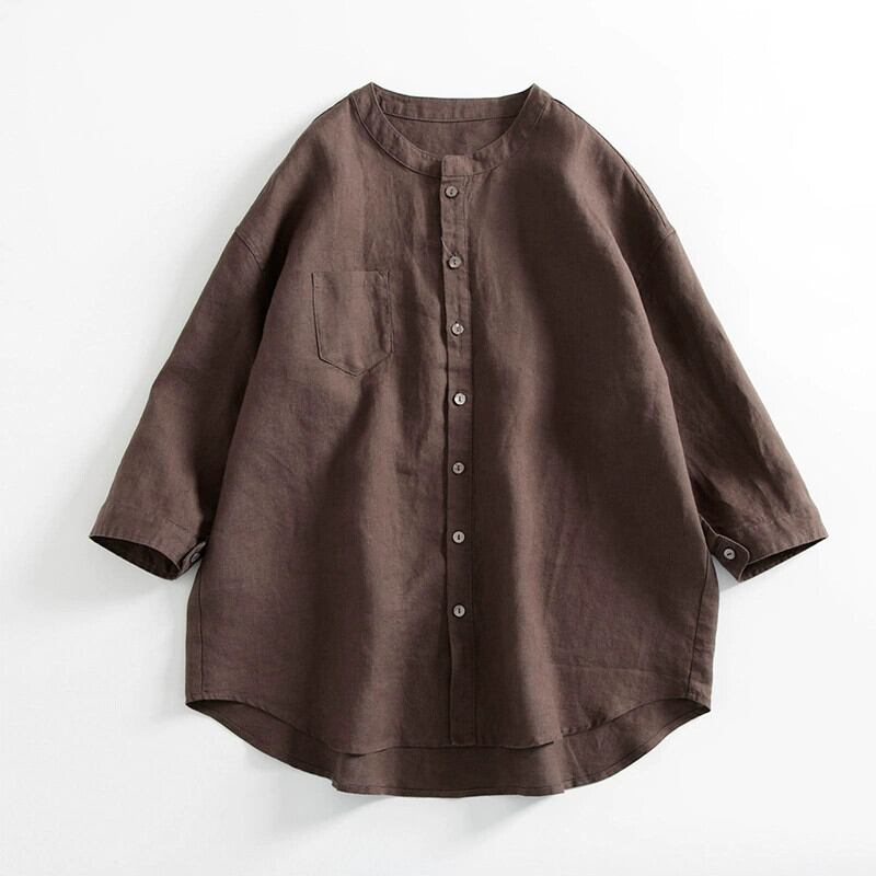 ビッグブランドテールグッズのクリアランスカウンター取り外しカジュアルラミーシャツレディースレトロルーズリネン七分袖トップ sine8778773597