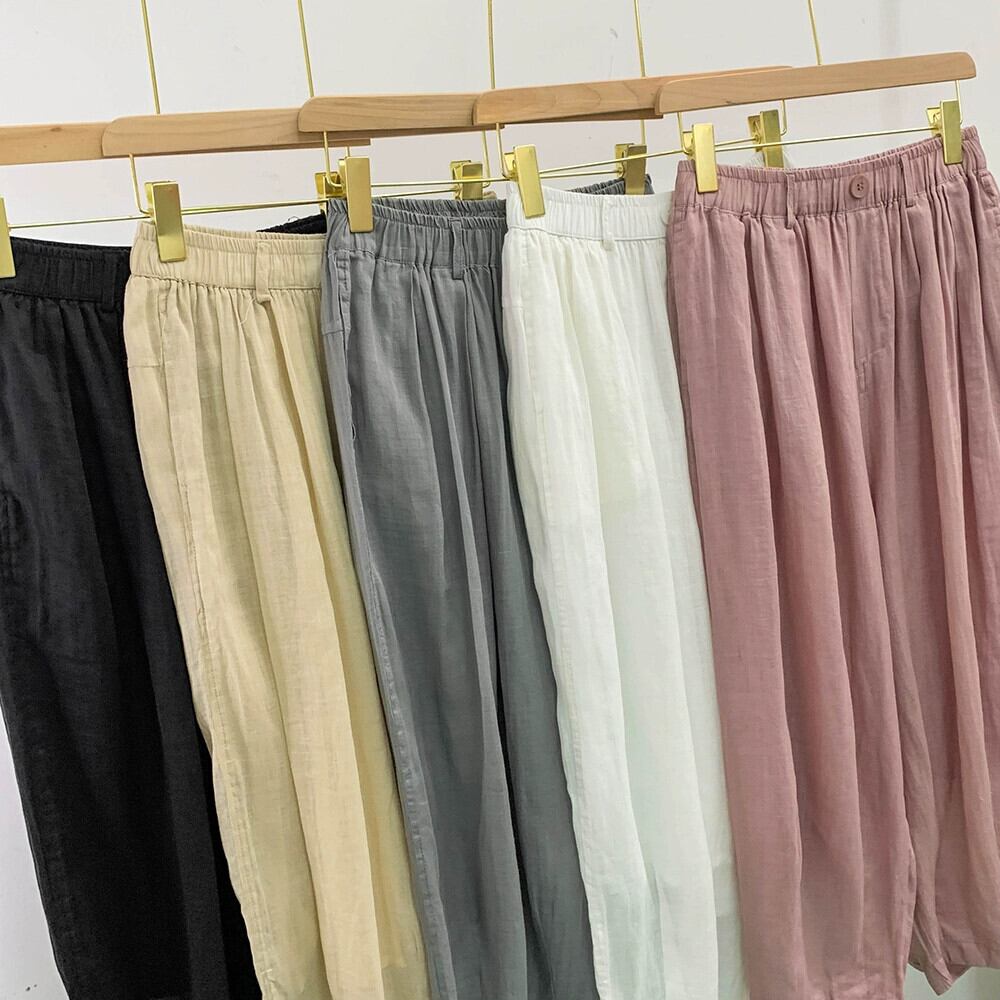 クリアランス漏れ〜リネン9点カジュアルパンツの女性のカウンター除去、芸術的なルーズハイウエストライトコットンとリネンのハーレムパンツ sine16666819706