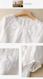 カウンタークリアランスグッズ、薄手ラミー半袖Tシャツレディース、ゆったり刺繍Vネック綿麻シャツトップス レッド コットン sine26304750175
