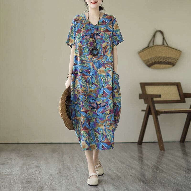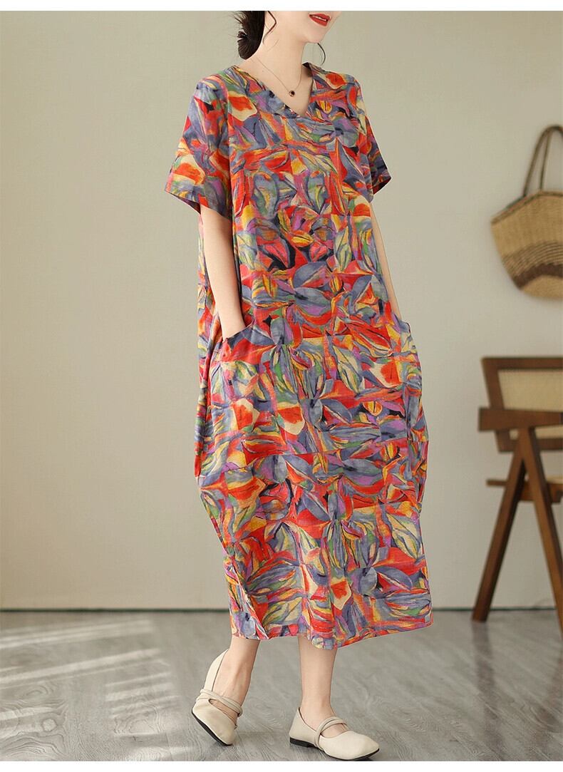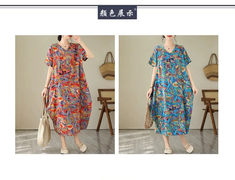モールのビッグネームがキャビネットから撤退エスニックスタイルの綿とリネンのドレス女性のレトロな油絵プリントリネンミドル丈スカート コットン sine57962313855