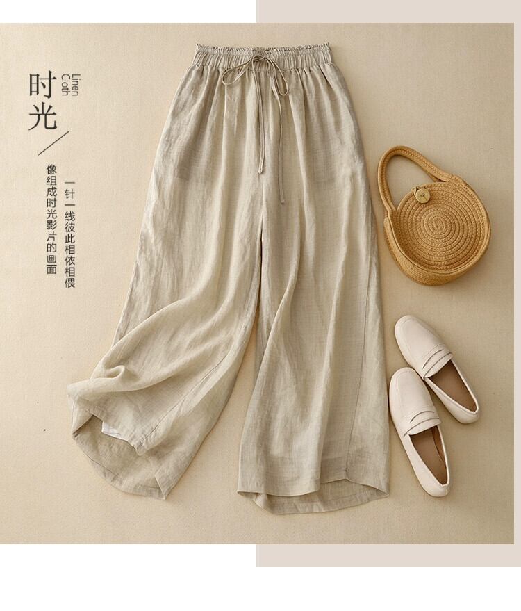 eign trade ese オリジナルビッグネーム削除リネンカジュアルワイドレッグパンツ女性ハイウエスト巾着ストレートコットンとリネン 9 点パンツ薄い sine5719688688