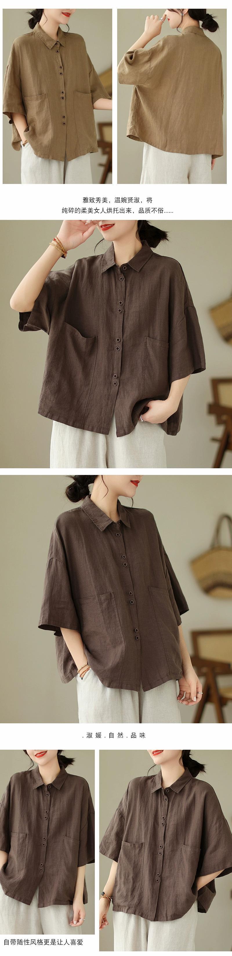 クリアランス クリアランス カウンター 牛グッズ 撤去 レトロ コットンとリネン 半袖シャツ レディース 夏 ルーズ リネン ビッグ ポケット トップ サマー 夏物 sine84768236883