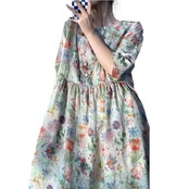 ディスカウント ストア ショッピング モールの女性の綿とリネンの花柄ドレス ルーズ ハイウエスト リネン A ライン スカート、大きな裾 コットン Aライン sine31487611936
