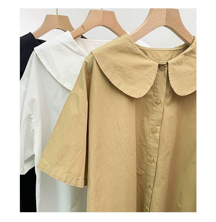 eign trade counter ブランドテールグッズ ese スタイル老化人形襟トップス女性シンプルな無地ルーズカジュアル半袖シャツ ソリッドカラー sine9056850150
