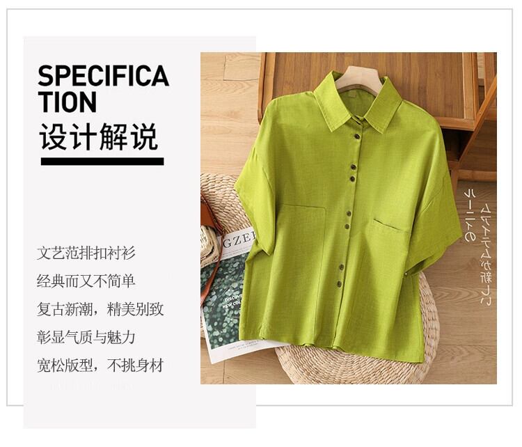 eign trade counter brand テールグッズ レディース ese 綿麻半袖シャツ レディース 夏 ルーズ リネン ポロカラー トップ 薄手 コットン サマー 夏物 sine65573340973
