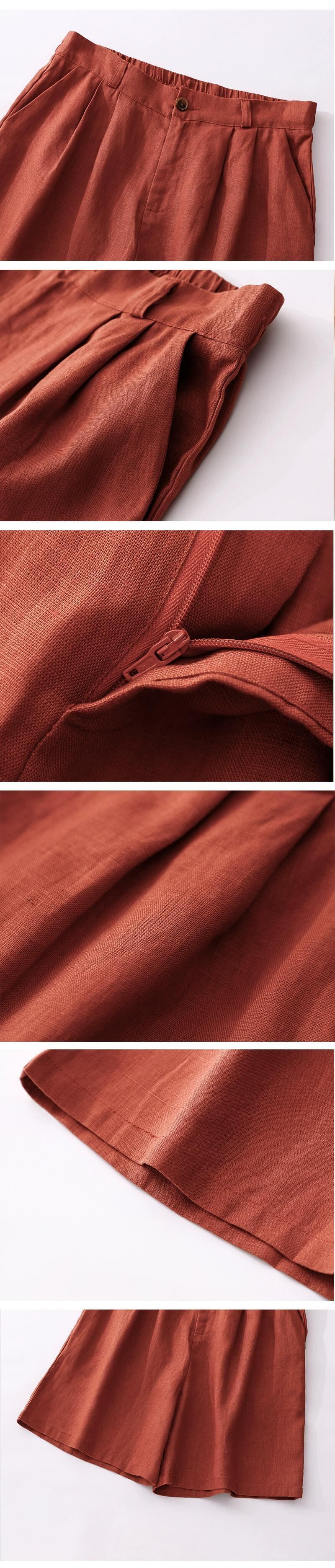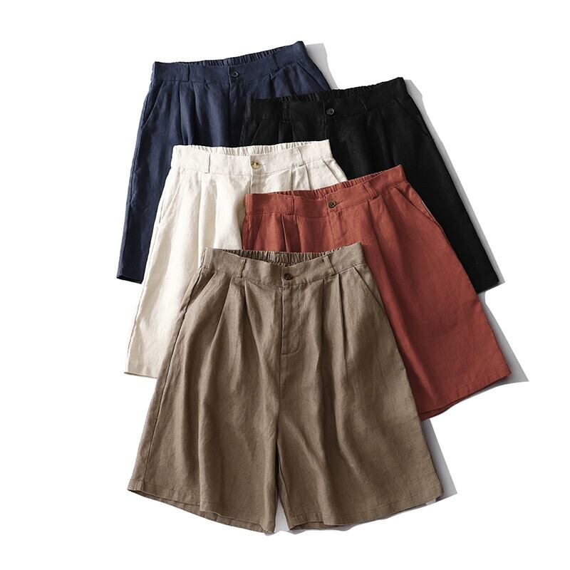 クリアランス漏れ ~ ese スタイルのコットンとリネンのワイドレッグ ショーツ、女性用ハイウエスト ストレート A ライン カジュアル リネン 5 分パンツ、カウンターで完売 ブルマー Aライン sine18191527387